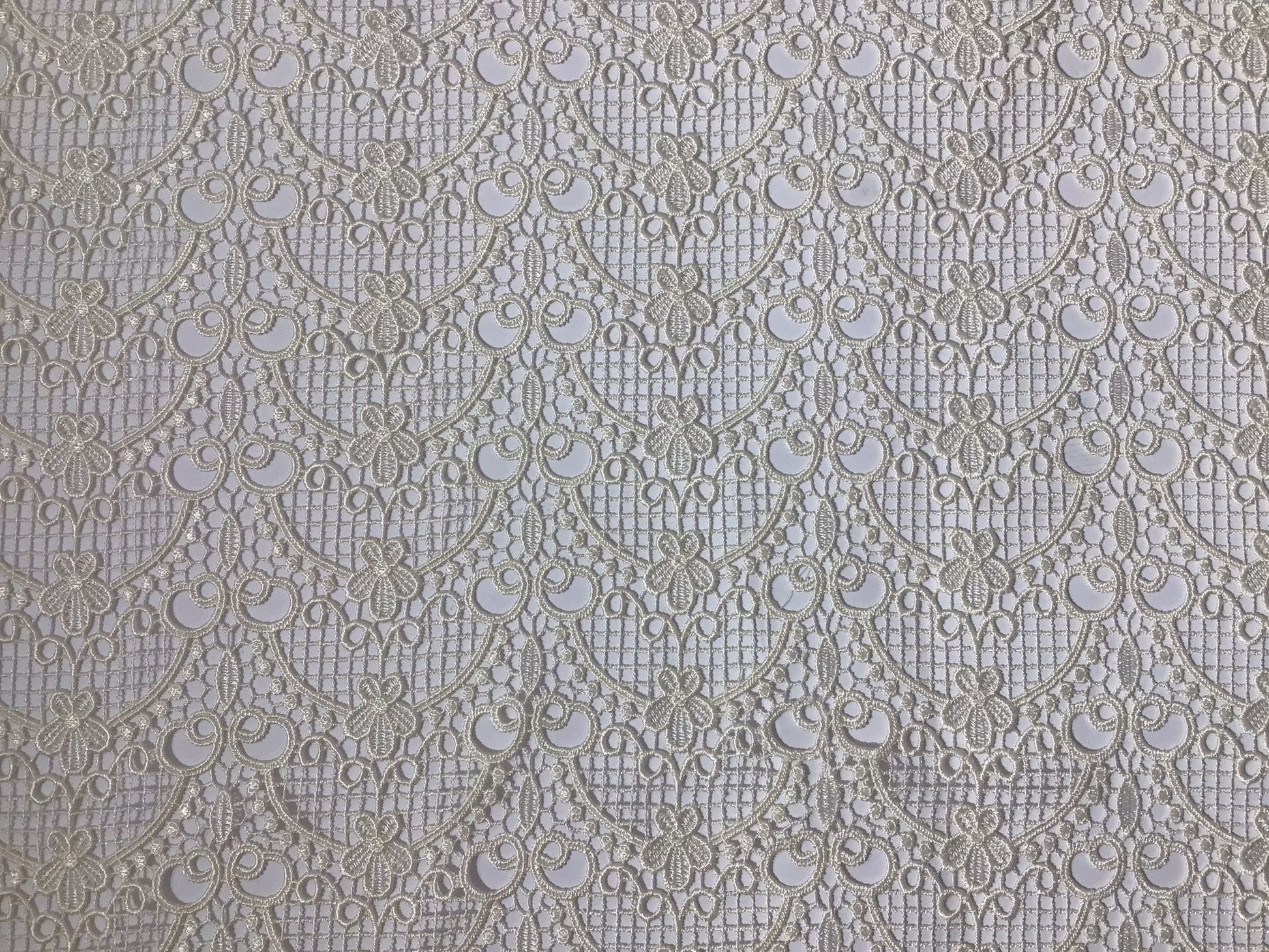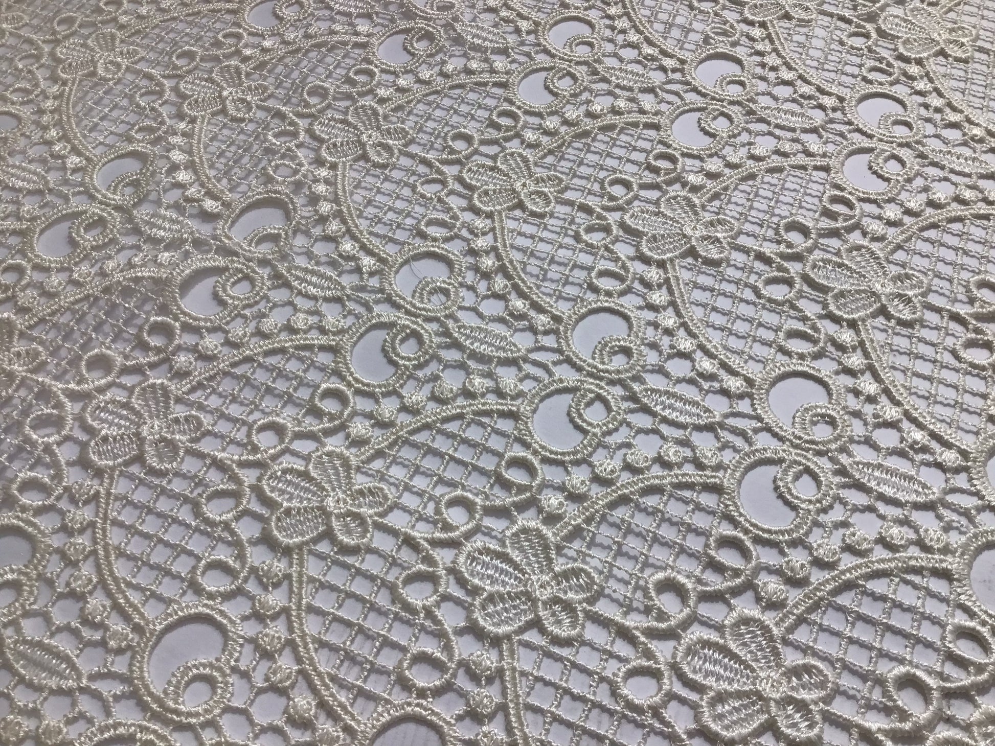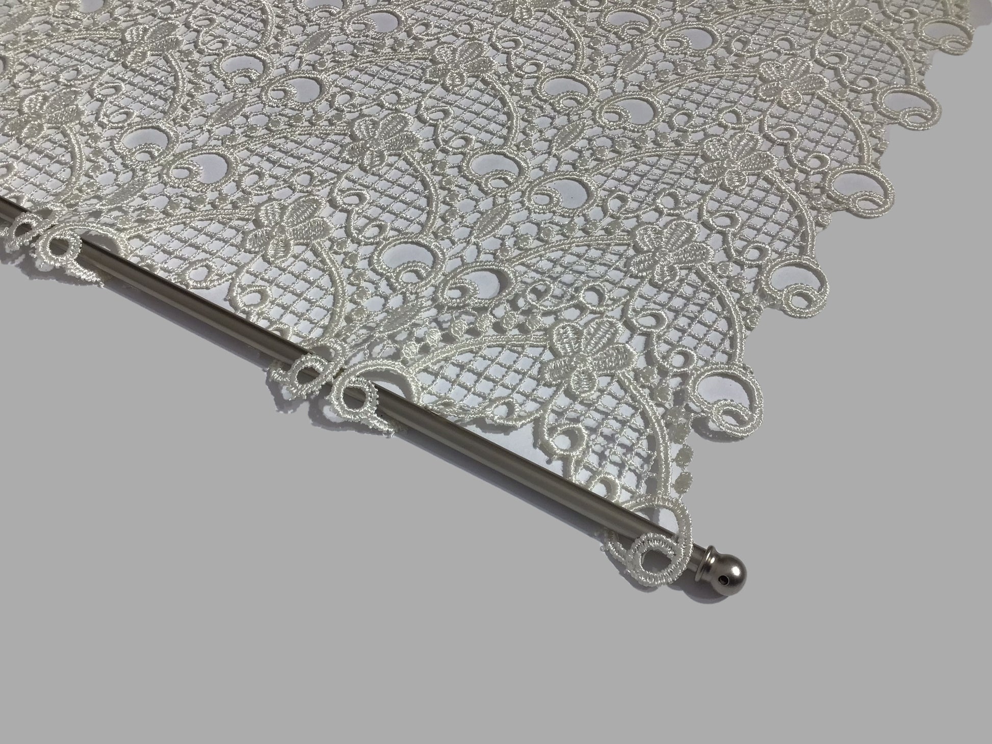 - Tessuto colore ecru in pizzo macramè 100% poliestere lavabile in lavatrice a 30°.