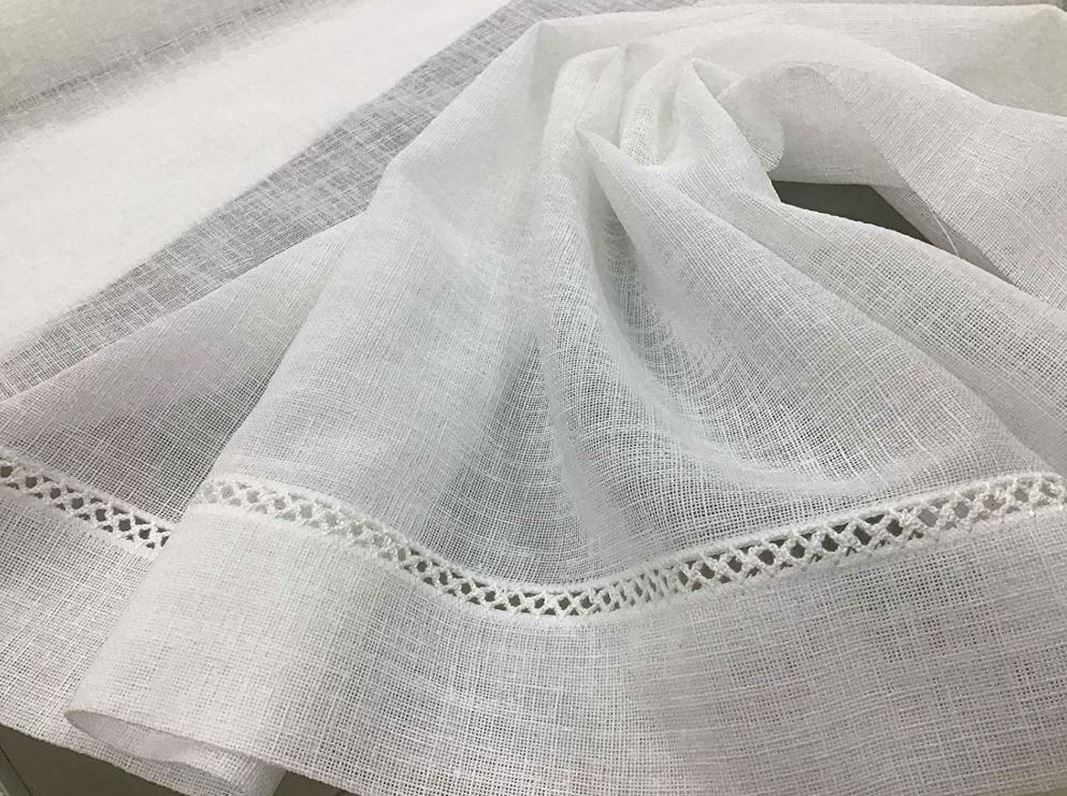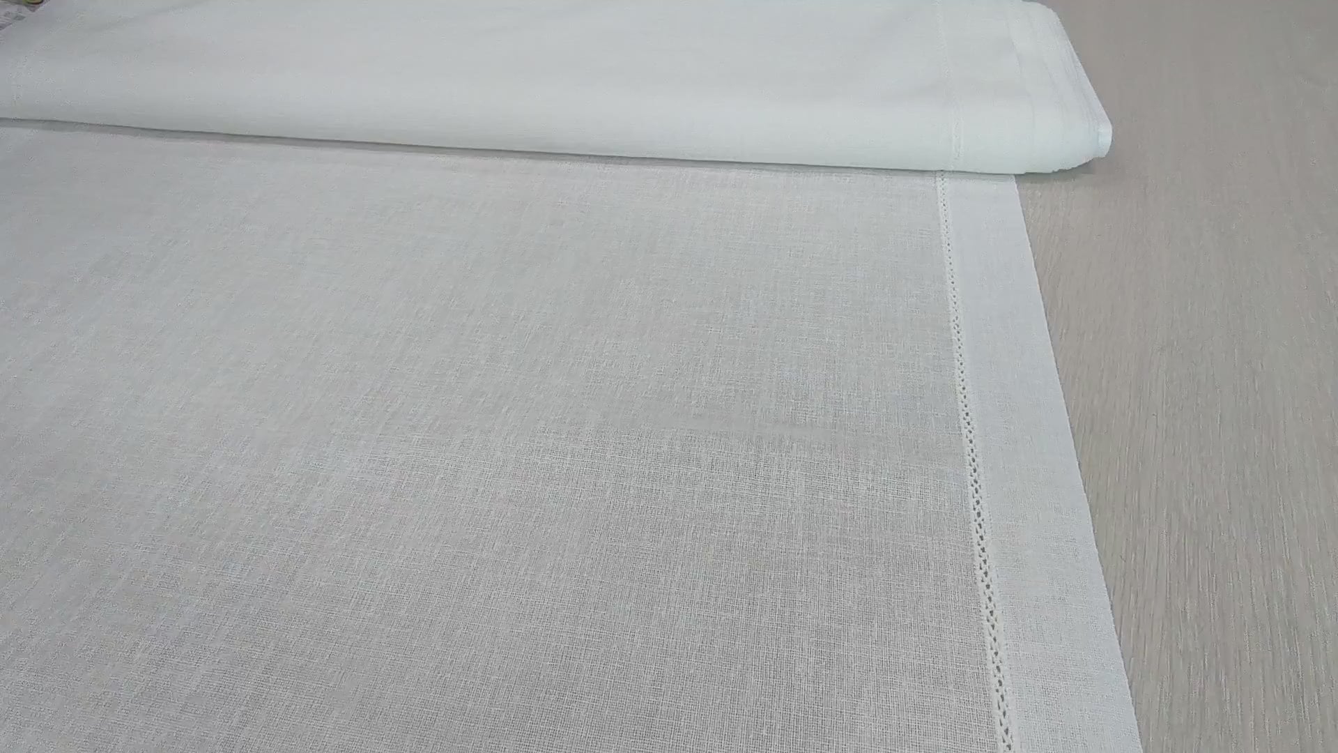 - Tessuto 100% poliestere effetto lino bianco naturale.